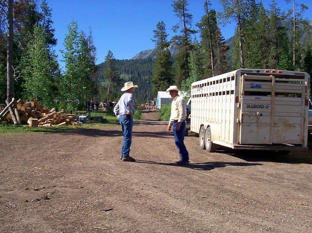 Grant (left), camp manager, and Tom, our guide; horse corral in the distance.
