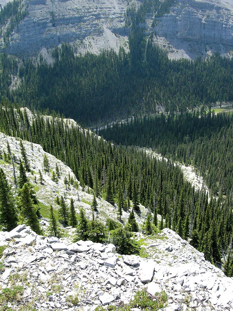 Note: Moose Dome Creek is in the canyon some 335 m (1,100') below. It flows into Canyon Creek approximately 3 km to the south, about .2 km northwest of Campsite #1.