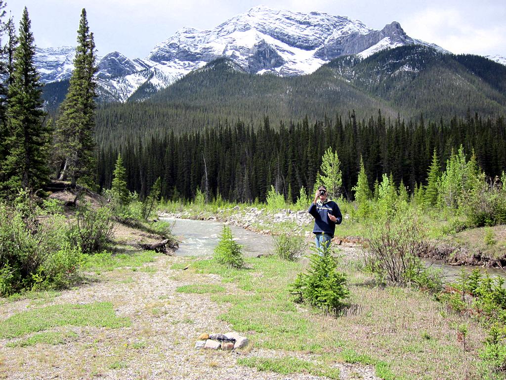 The pole bridge spanned the stream where Jim is standing, but high water in the spring of 2011 caused it to wash out.