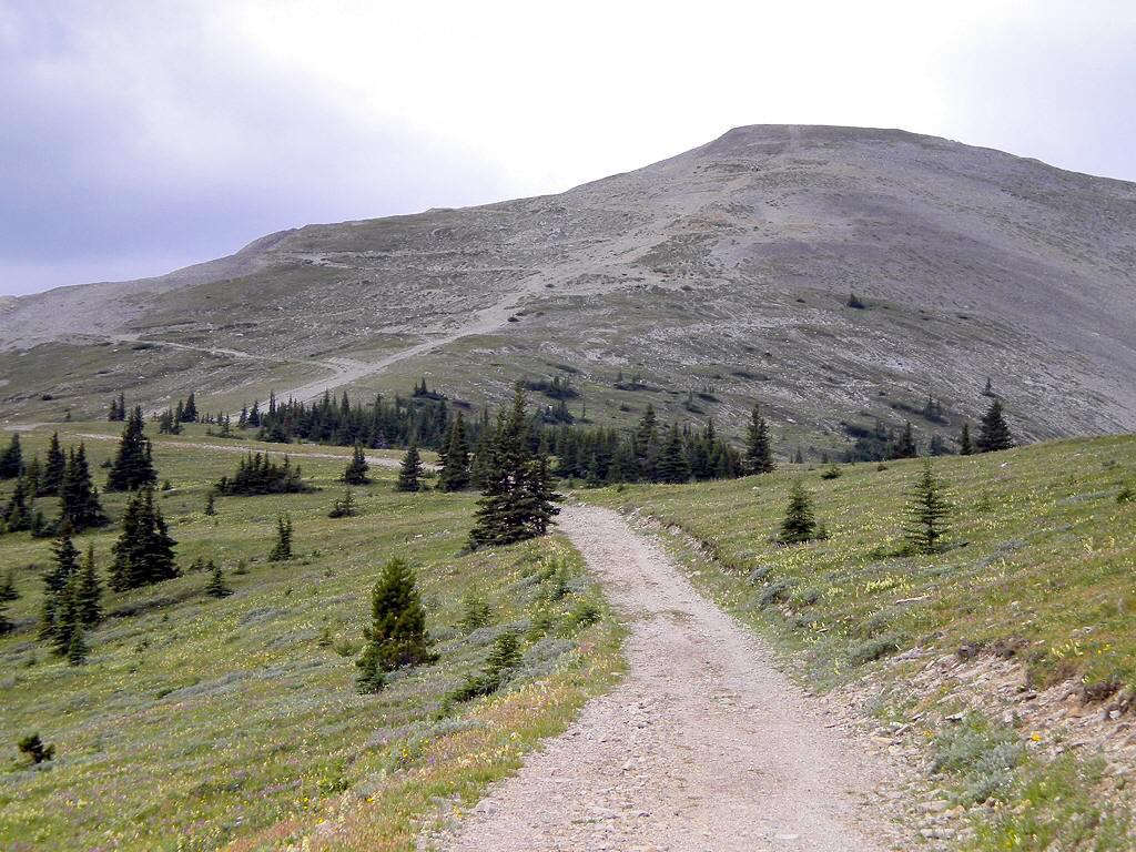 Follow the trail up the mountain in the background to get to the fire lookout station.