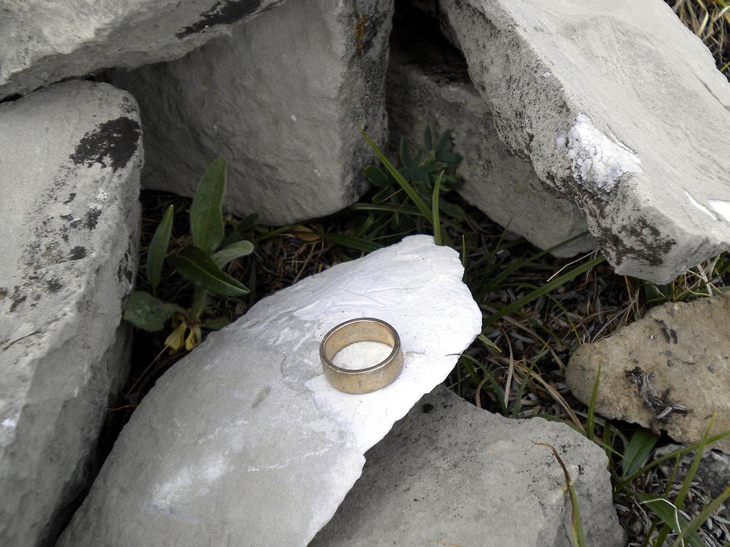 A ring, left by someone at the cairn. The inscription (inside) reads "Brokeback."