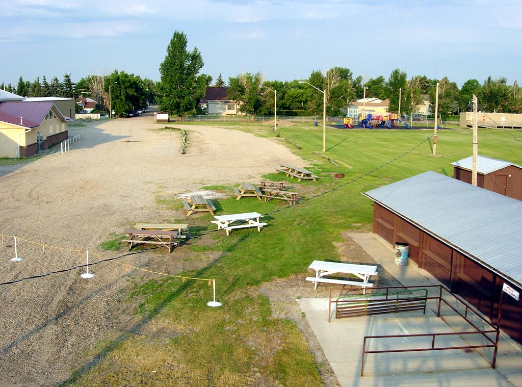 Rockyford’s Main Street is a short walk just beyond the trees.