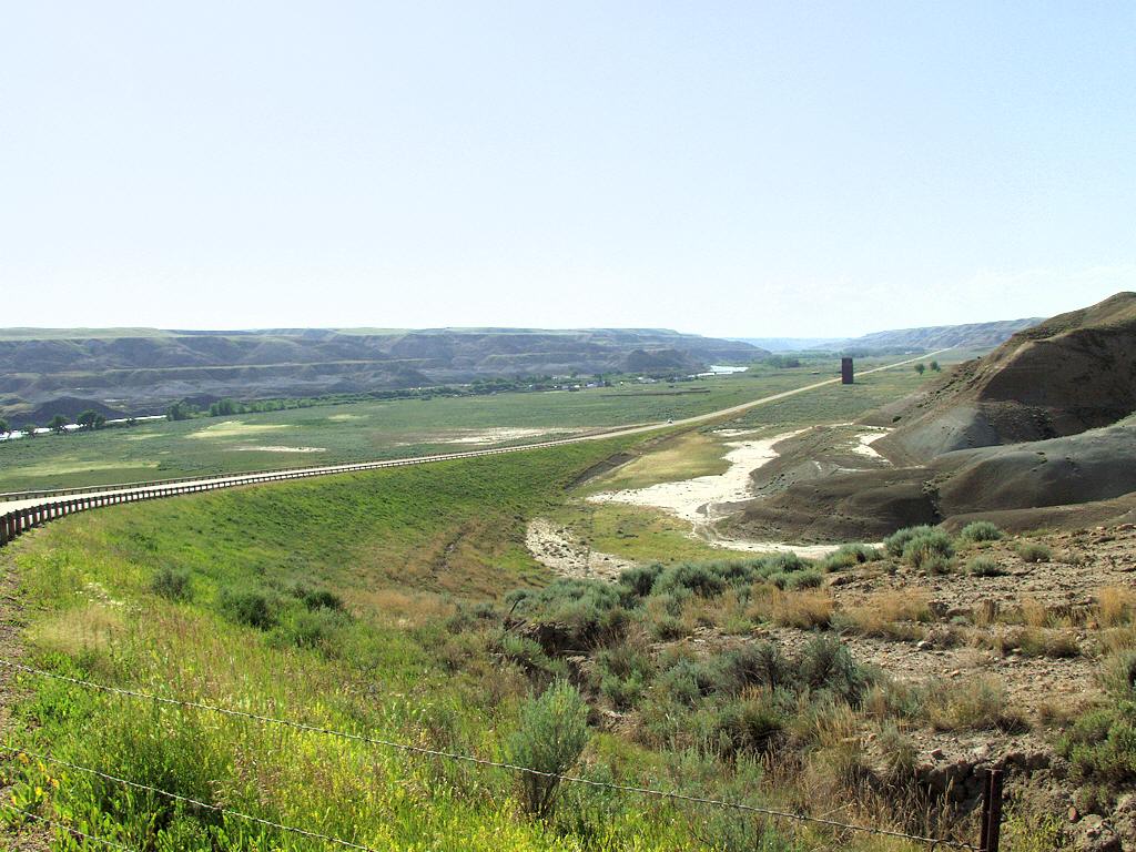 Hwy 570 westbound, east of Dorothy, AB, showing the valley of the Red Deer River and part of Dorothy. See Albums for photos of Dorothy.