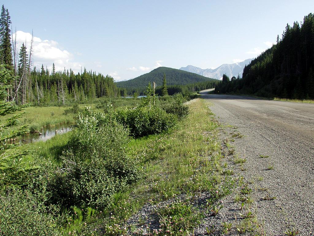A marsh (left), south of the Riding Lake (center) and Mountain Highway (right).