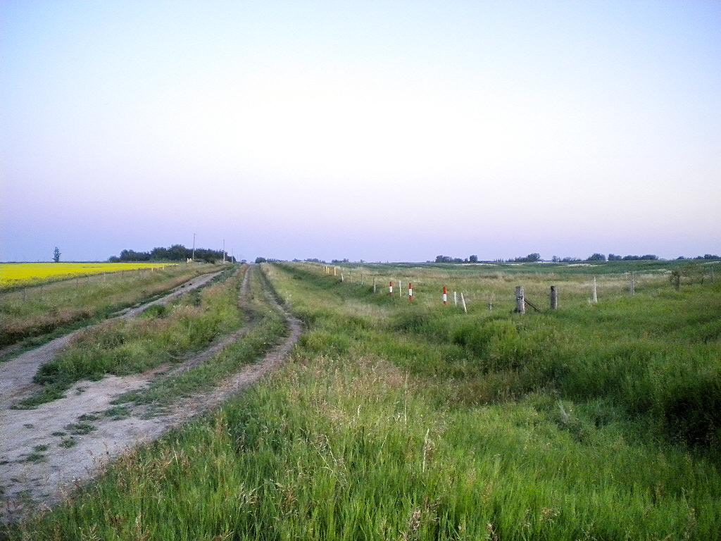 Range Road 283, looking back from the railroad crossing towards Township Road 250.